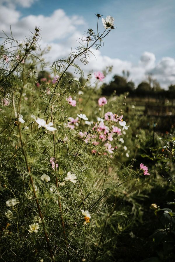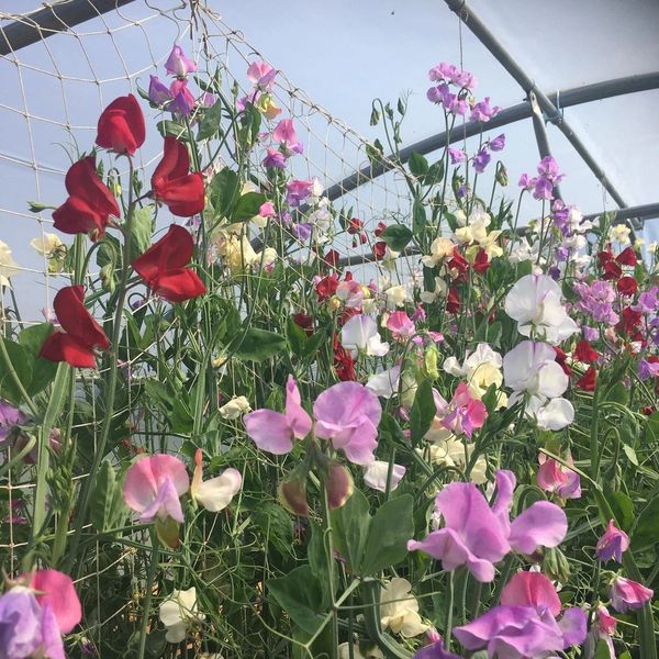 We sell a wide variety of flowers including roses, dahlias, sweet peas, foliages, colourful perennials such as echinacea, solidago, verbena, an unusual but beautiful pink gypsophilia. We change up our range of annuals each season - do let us know if there's something you really want us to grow!